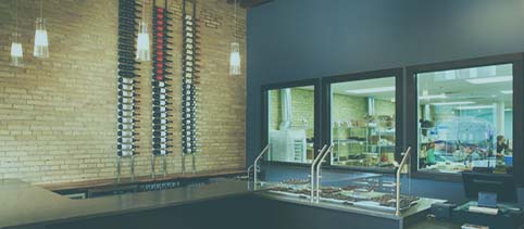 At our shop and chocolate pairing bar in the Walker’s Point neighborhood of Milwaukee you can enjoy our confections thoughtfully paired with wines, craft beers, cheeses, and whiskey as you watch our chocolatiers at work in our kitchen.